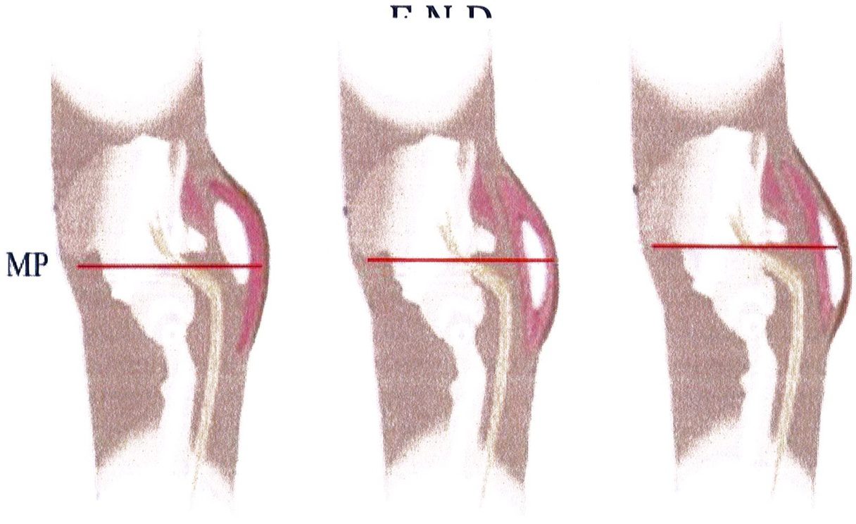 Cấy ghép dưới cơ có điểm chiếu tối đa cao nhất so với điểm lý tưởng ở mức tại gò mu. Implant trong cơ làm giảm điểm hình chiếu tối đa, nhưng chúng vẫn cao hơn mức lý tưởng. Implant dưới cân hạ thấp điểm chiếu tối đa gần với lý tưởng nhất ở mức của gò mu (hình 3).