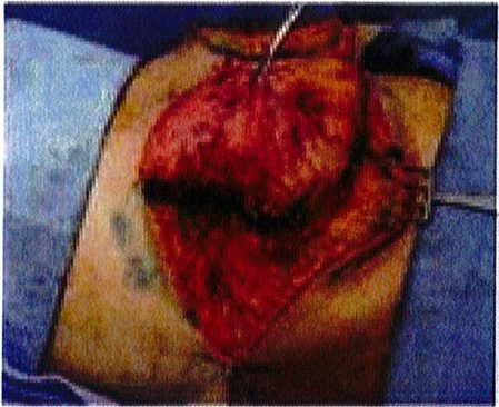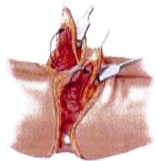 dụng nắp chuyển vị hoặc nắp ria mép, các mô của thanh tay câm phía bên có chiều rộng và chiều dài mong muốn sau đó sẽ được rút ra. Một chiếc khăn hoặc thước dây được sử dụng để xác định độ quay không đủ của cánh xoay hoặc chuyển vị từ trước của các thanh tay cầm của nắp chuyển vị ria mép. Điểm giới hạn đối với vòng cung quay là 12 cm tính từ đường giữa đối với vạt di chuyển ria mép và đường viền dưới của cơ mông tối đa đối với vạt xoay. Khi đã ở vị trí năm sấp, các vạch trên và dưới trung tâm (xương cùng) cho phần sau của CBL / EBL sau đó có thể được điều chỉnh thấp hơn 1 đến 3 cm để thích ứng với sự dịch chuyển cao hơn của các mô lỏng-lẻo, kgết
