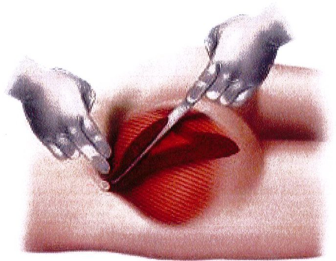 vịt trong thăm khám sản khoa). Công cụ này hoàn tất phần phân tách các bó cơ, phá vỡ hoàn toàn các vách ngăn giữa các bó cơ để tạo khoang sandwich như mong muốn.