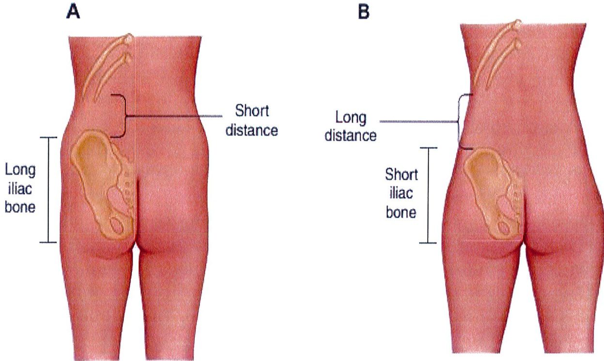 Long iliac bone: Xương chậu dài Short distance: Khoảng cách ngắn Long distance: Khoảng cách dài Short iliac bone: Xương chậu ngắn
