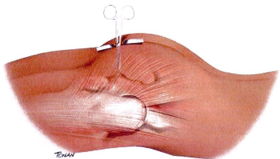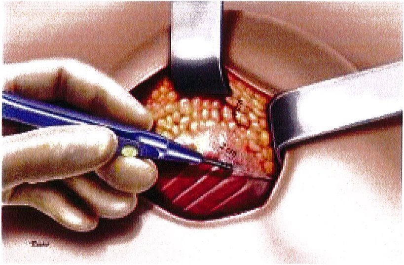 Hình. 4. Đường hầm dưới da có chiều rộng x dài là 2 x 4 cm là đủ để có thể tiếp cận tới lớp cơ và bóc tách được chúng.