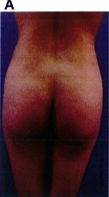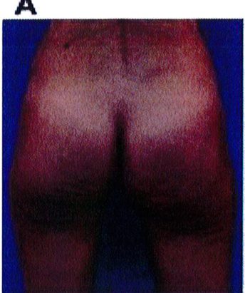 Hình. 18.. (A) Hình anh trước và (B) và sau phẫu thuật làm đầy mông của bệnh nhân được đặt khối implant dưới cân thể tích 225 mL, hai bên.