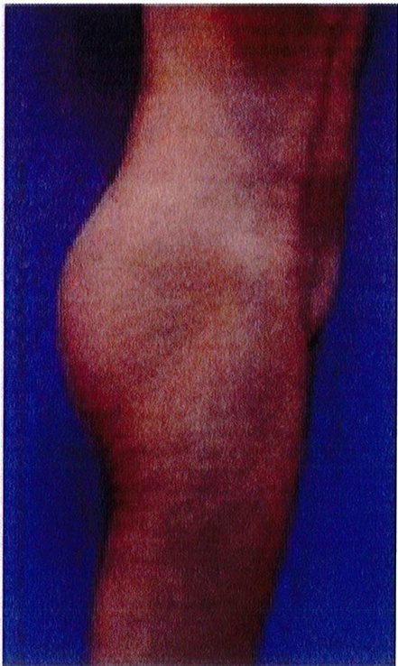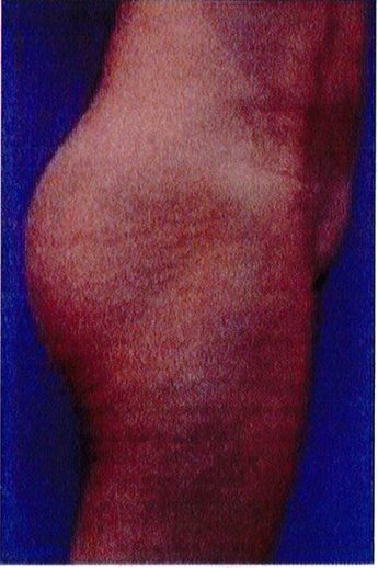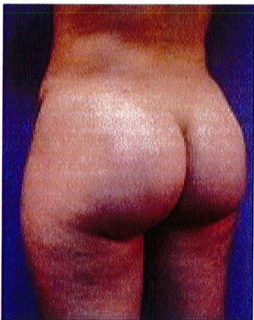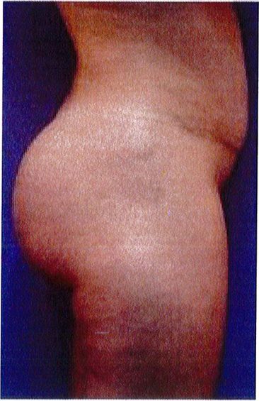 Cuối cùng, một bệnh nhân 48 tuổi có vùng thắt lưng tương đối phẳng. Với tiền sử đã từng hút mỡ và hiện tại đang mong muốn được làm đầy mông để cải thiện hình thể phần thắt lưng (một cách tương đối). Hai khối implant mi- crotextured thể tích 300 mL được đặt ở dưới cân. Bệnh nhân được tiếp tục điều trị bằng liệu pháp siêu âm (dùng sóng siêu âm) sau phẫu thuật nhằm giảm phản ứng viêm tại chỗ. Sau phẫu thuật không ghi nhận biến chứng (Hình 21).