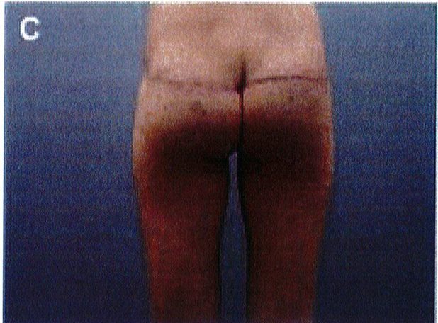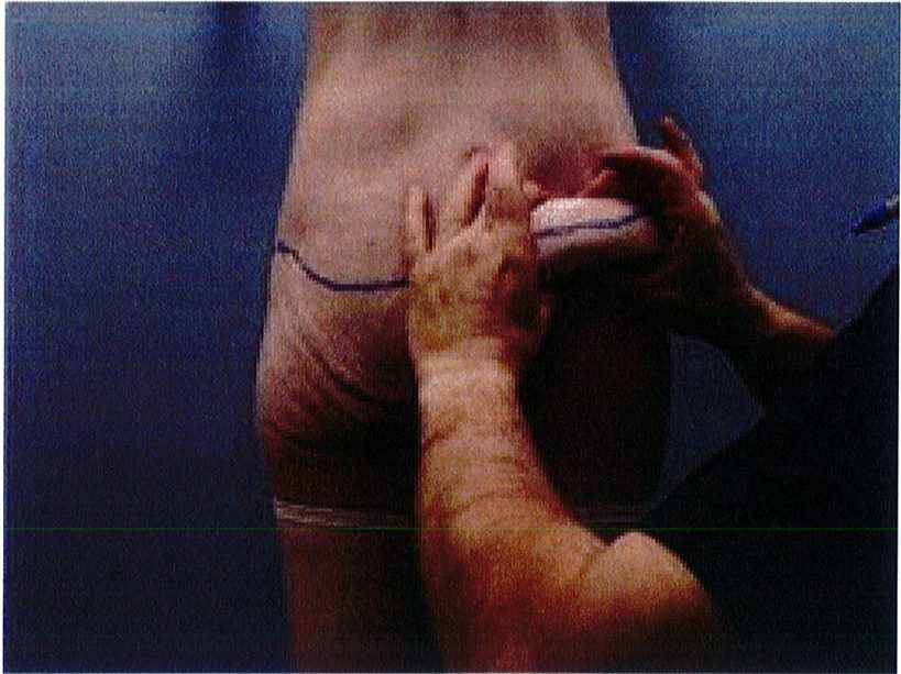 Hình. 3. Nghiệm pháp tiếp tục được thực hiện ở vùng mông để đánh dấu đường rạch da.
