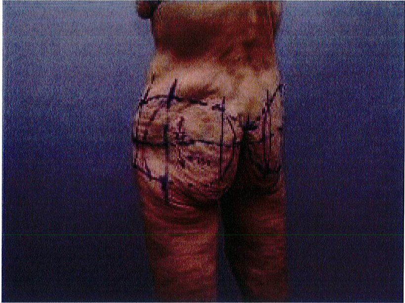 Bệnh nhân được đánh dấu vùng phẫu thuật ở tư thế đứng. Điểm hình chiếu của mông được xác định, như cách mà tác giả Cen- teno và Mendieta đã mô tả, là điểm thuộc đường đi từ mấu chuyển tới xương cụt. Đường này xác định điểm hình chiếu của mông sau phẫu thuật.